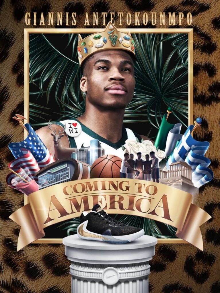 The partnership between NBA player, Giannis Antetokounmpo and Nike has produced a shoe inspired by his favorite film, the 1988 classic, “Coming to America.” The Athens, Greece native whose parents originally hailed from Lagos, Nigeria came from humble beginnings. However, he shares a similar “dream come true” experience to Eddie Murphy’s character in the movie, Price Hakeem.