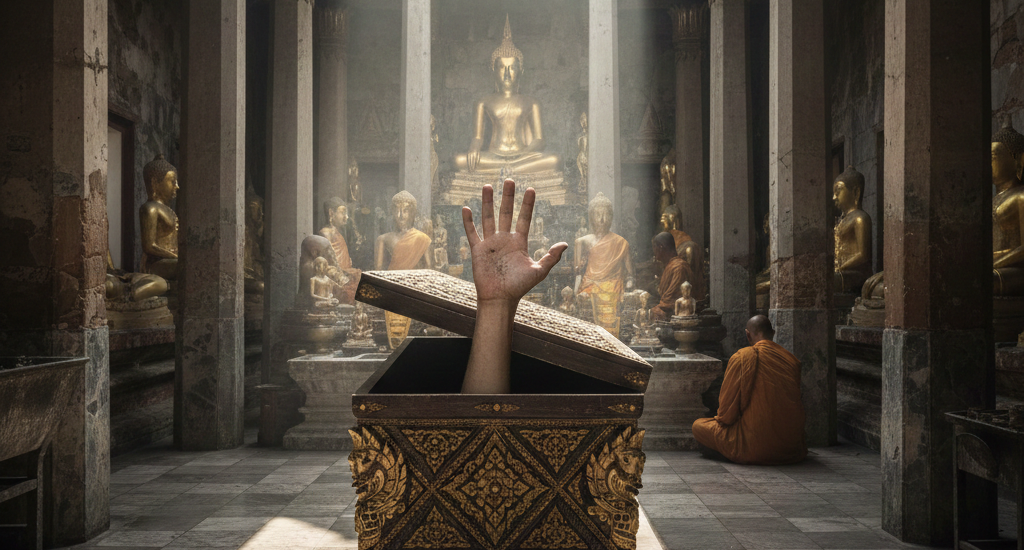 A quiet day at a Thai temple turned into chaos when a woman believed to be dead began moving inside her coffin just before cremation. The unexpected moment, reported by the Associated Press, happened at the Wat Rat Prakhong Tham, a Buddhist temple in Nonthaburi province near Bangkok.