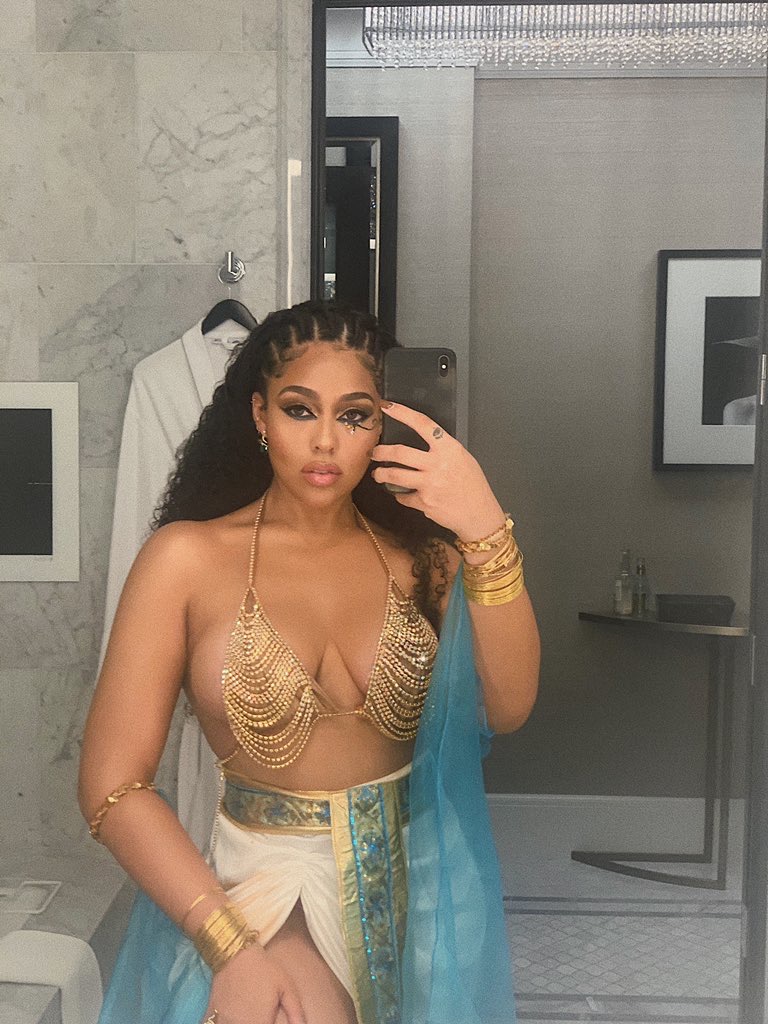 Jordyn Woods showed some skin as Egyptian Queen Cleopatra.