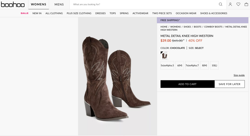 Fashion Nova and Boohoo now offer the latest cowboy core style, including cowboy boots, bolo necklaces, and more, usually priced from $10 to $70, ensuring affordability for everyone.