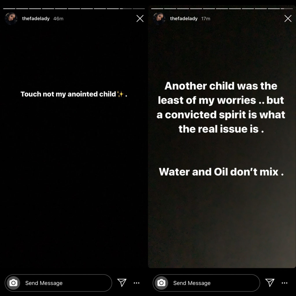 Although she later deleted the damning posts, she continued to express her frustrations, saying, “I’ve been asking God to show me the people who aren’t for me, and he did just that.”