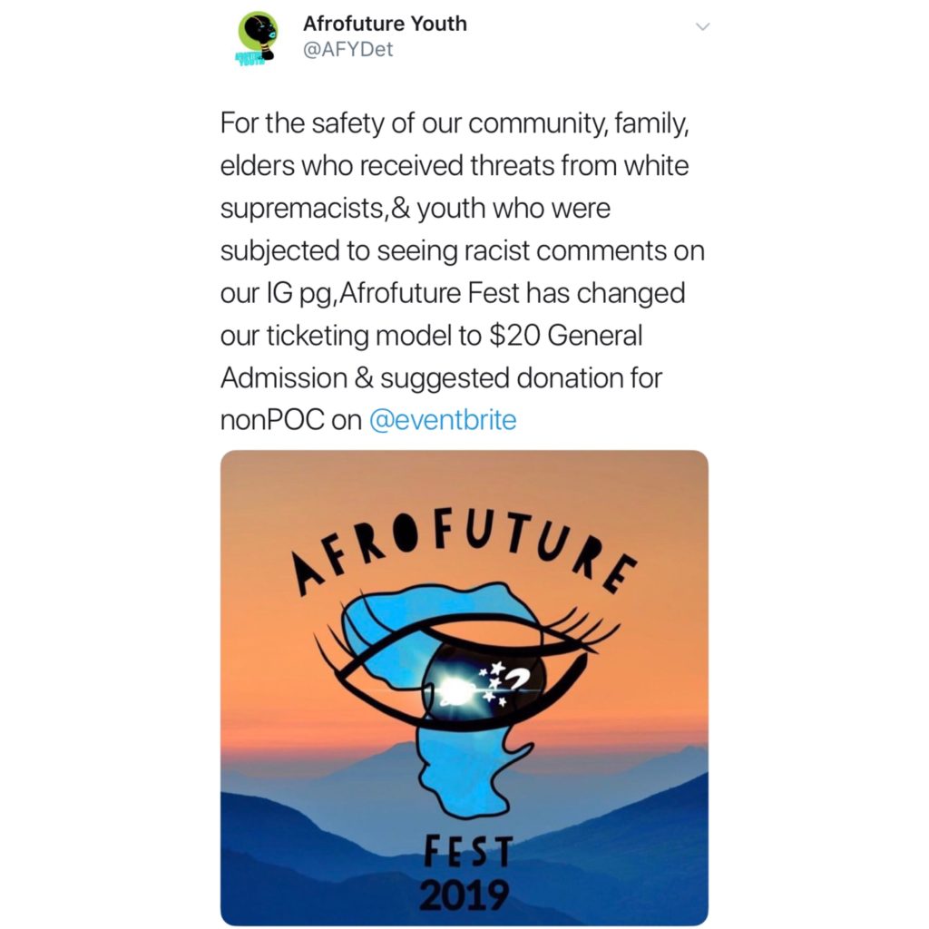 Now after backlash, the Afrofuturist group has decided to reverse its decision to over-charge white people for tickets. In fact, amid the criticisms, the group began receiving threats, an artist dropped out and Eventbrite even threatened to unpublish their event.