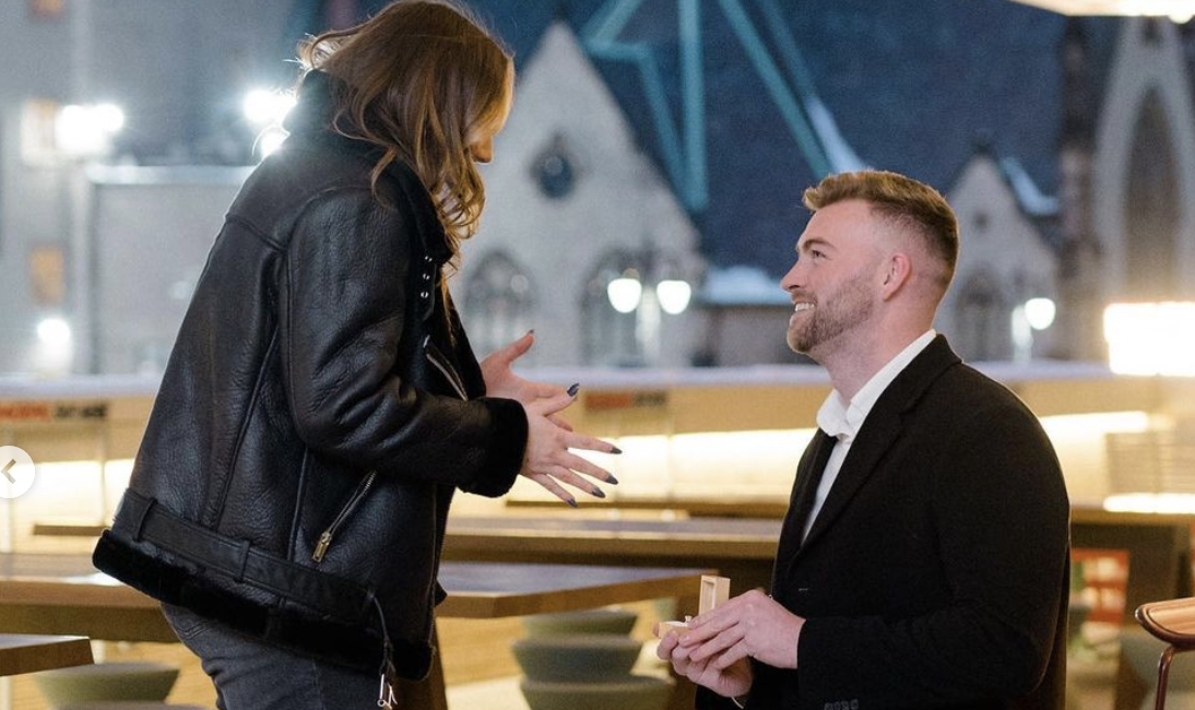 Her three million followers saw a photo of McClintock’s proposal, where he got down on one knee and proposed, and pictures of the engagement and champagne-popping celebration.