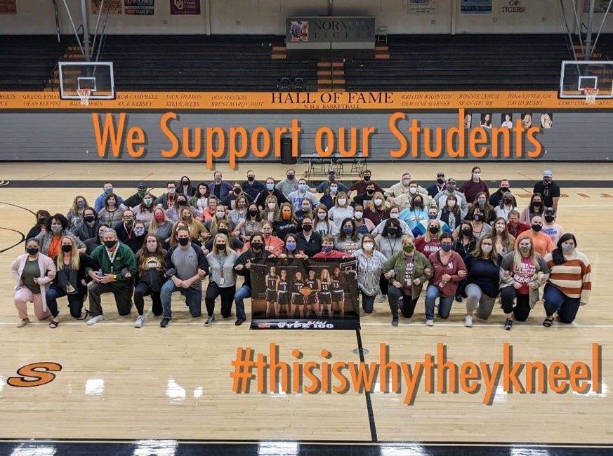 When every player from Norman decided to kneel for the anthem’s duration, the announcer could be heard reacting with his racist outburst on the National Federation of State High School Association Network‘s official live stream.