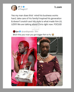 This only infuriated Cardi, who uploaded videos allegedly proving that Griffith lied. She didn’t stop there. The Bronx star went on to upload alleged screenshots from JT to Lil Uzi Vert. In one of the messages, Uzi appears to confirm that JT was pregnant at least once. In another, it appears to show JT confronting Uzi over cheating. Cardi spewed more hate, accusing Uzi of forcing JT to terminate her pregnancy.