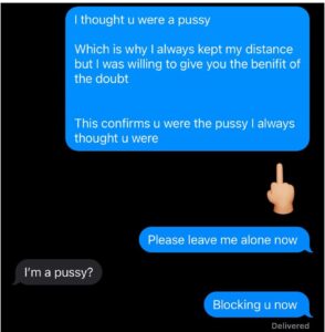 The exchange then took a darker turn. Bieber fired off a message calling the man a derogatory name, saying he had always doubted him. The conversation ended with Justin typing, “Blocking u now.”