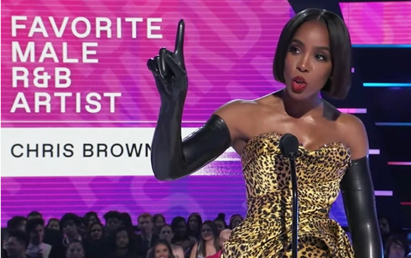 Kelly Rowland had to check the American Music Awards audience while announcing Chris Brown as the winner of an award Sunday night.