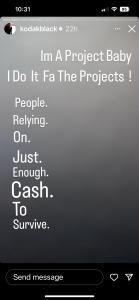 “28 families was bout to get evicted for being behind on their rent a few months,” Kodak wrote. “I paid what they owed and also paid their rents for the next few months, so they good for the [remainder] of the year.”