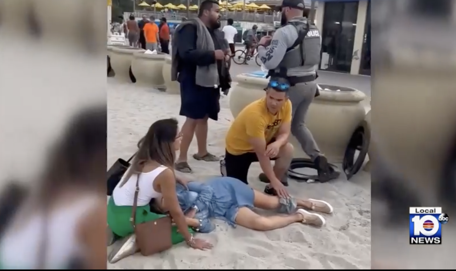WPLG Local 10 reported that police had apprehended one person and are seeking the second suspect, a male with dreadlocks who was last seen wearing a black short-sleeve shirt and camouflage shorts.
