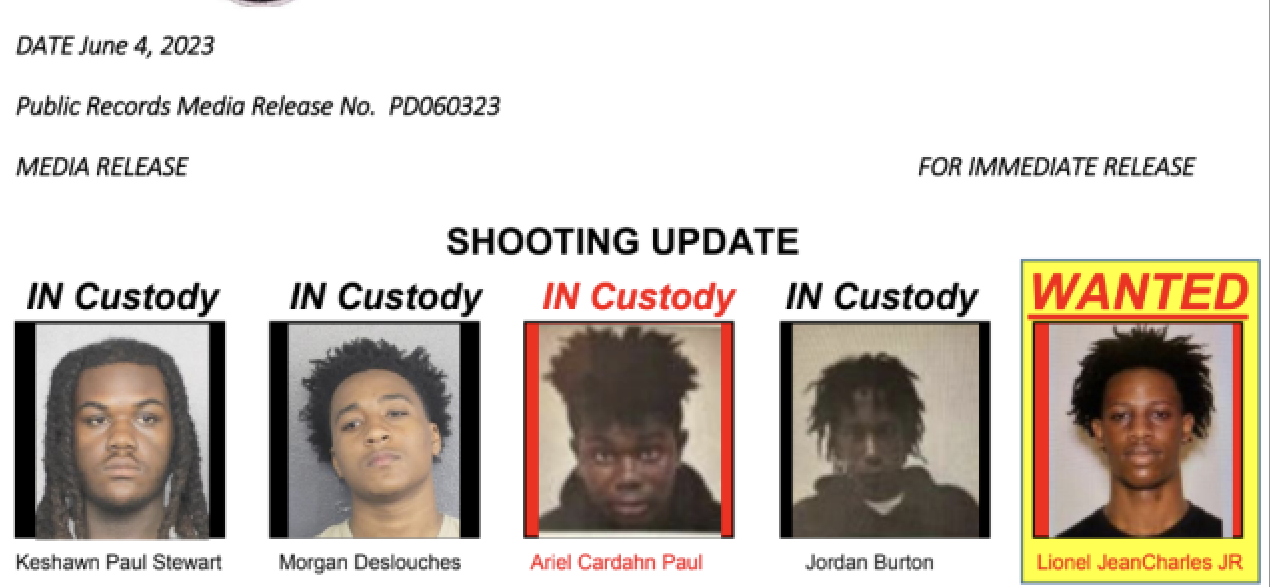 Police previously arrested two 18-year-olds, Keshawn Paul Stewart and Morgan Deslouches, in the immediate aftermath of the shooting on firearm-related charges.