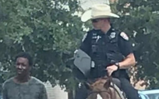 Over the weekend, photos surfaced of the officers’ arrest of the man and their subsequent use of a leash to lead him through the streets while they rode horseback. According to the police department, the 43-year-old, who has been identified as Donald Neely, was arrested for criminal trespassing in downtown Galveston.
