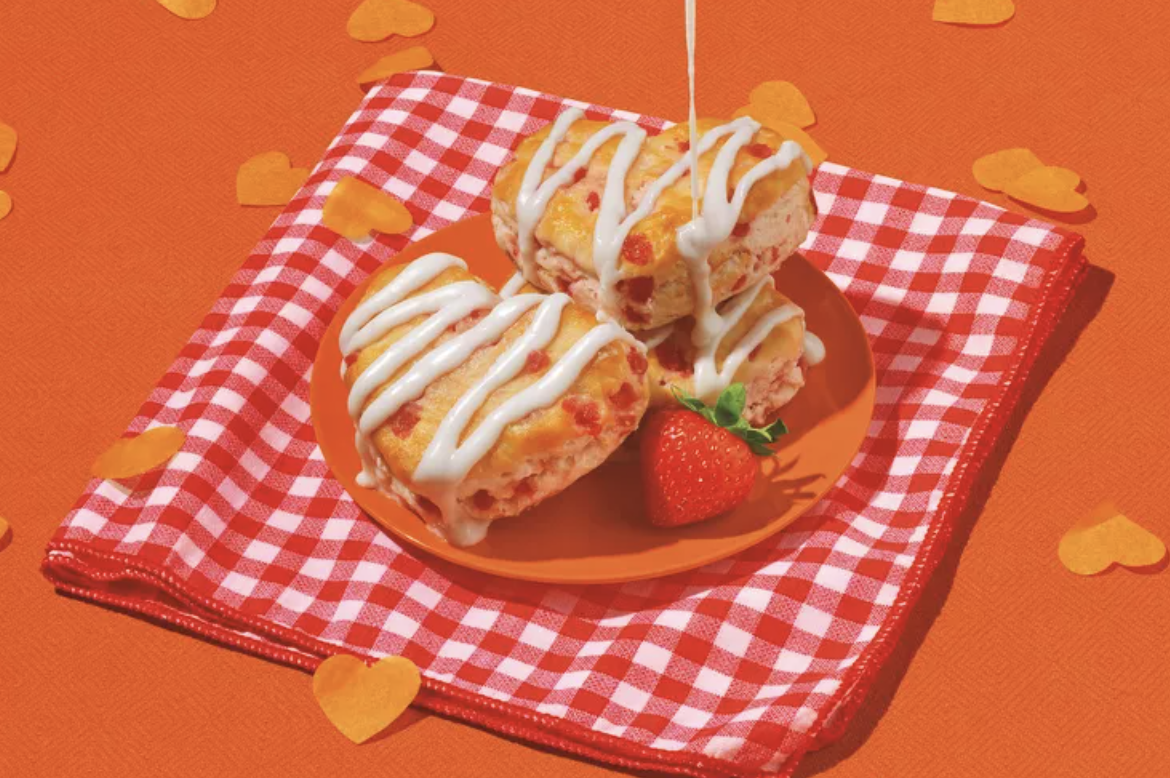 Popeyes is spreading the love this Valentine’s Day with their limited-edition heart-shaped strawberry biscuits available for three weeks this month.