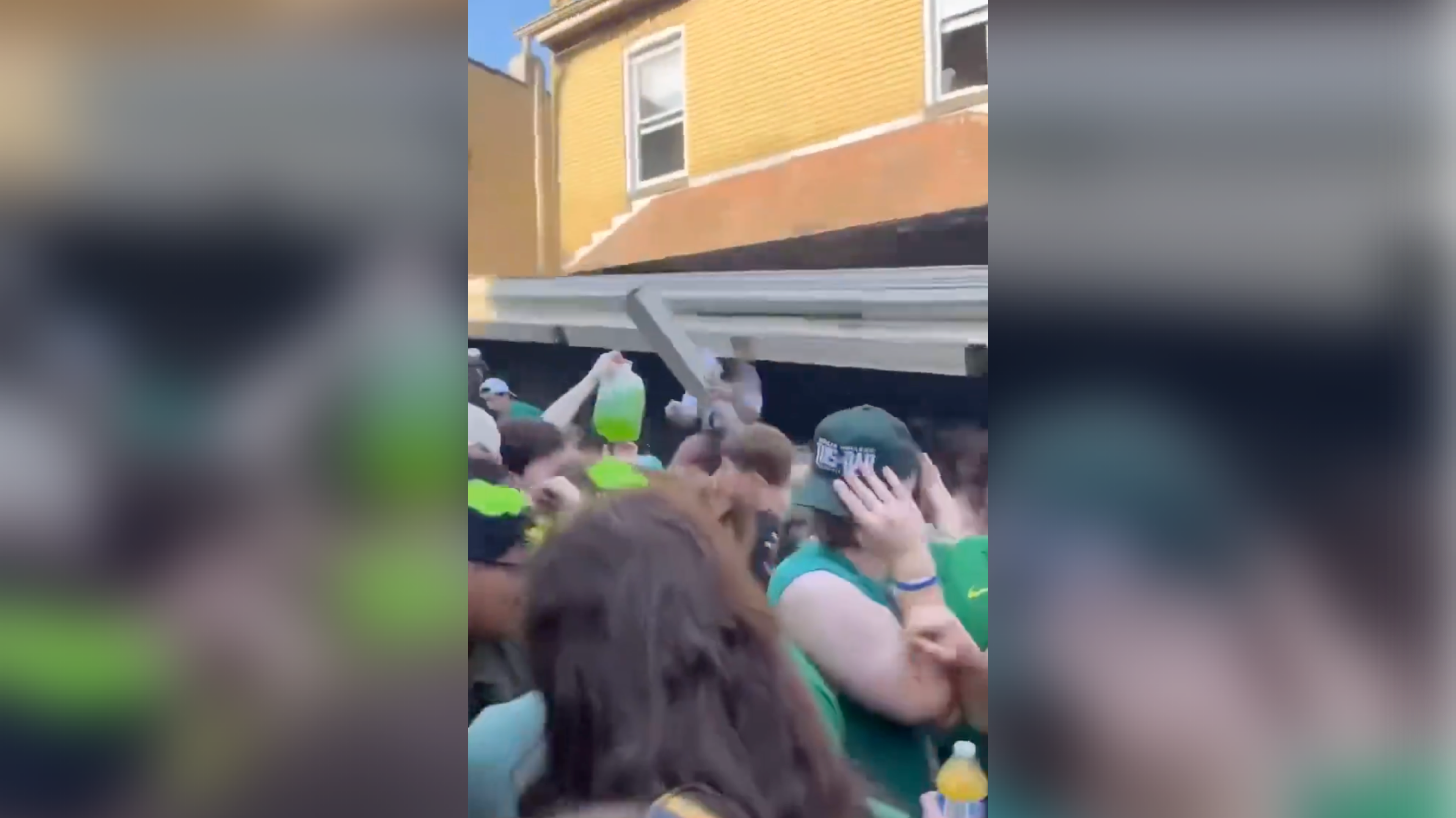 The shocking scene was captured in a video posted on Twitter, showing partygoers in the Oakland area of Pennsylvania enjoying the festivities.