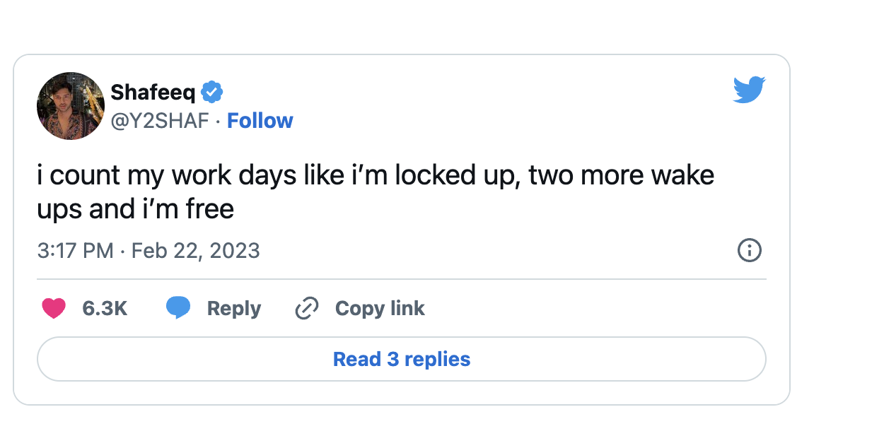 i count my work days like i’m locked up, two more wake ups and i’m free