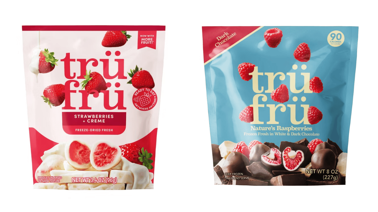 The affected products were sold nationwide at major retailers, including CVS, Target, Kroger, H-E-B, and Food Lion. They include various sizes of Tru Fru Freeze Dried Strawberries in Dark & White Chocolate and the Strawberries & Crème version.