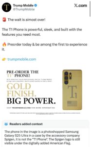 Readers on X even added context to the original Trump Mobile post, clarifying that the phone shown in the promo was not a new model, but rather a doctored Samsung image.
