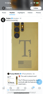 In a flashy gold promo image shared by Trump Mobile, the so-called “T1 Phone” was revealed to be nothing more than a Samsung Galaxy S25 Ultra mockup inside a case made by accessory company Spigen. The Spigen logo was still faintly visible under the digitally added American flag design, making the Photoshop job easy to spot.