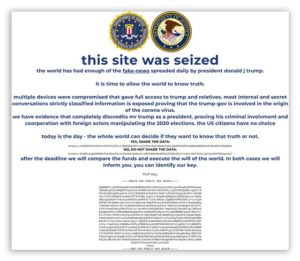 “This site was seized,” read a message that was posted on the homepage at donaldjtrump.com. The “world has had enough of the fake news spread daily” by Donald Trump, it added.