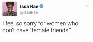 “I feel so sorry for women who don’t have “female friends”. When I first saw this tweet by Issa Rae, it really spoke to my spirit and I couldn’t help but wonder, why do so many women have such animosity towards each other?