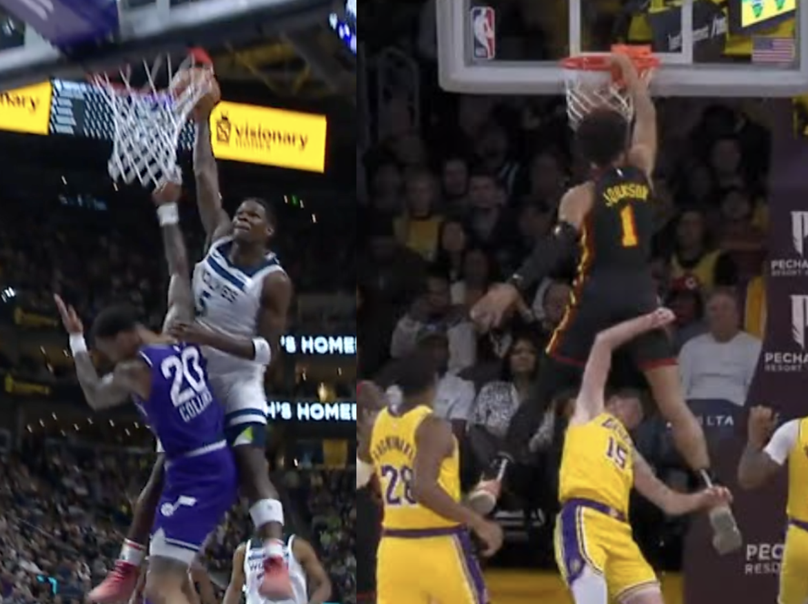 The Timberwolves star shooting guard had arguably his best dunk in his brief NBA Career. Elevating a step past the free throw line, Edwards dunked on John Collins so hard that he couldn’t celebrate due to him dislocating his finger. Sourced also reported following the game that Collins suffered a head contusion on the play.