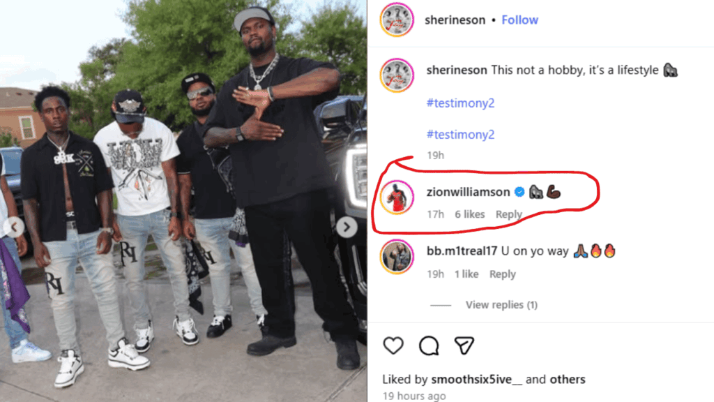 Critics were quick to call out the athlete, questioning his judgment and the company he keeps, especially since Williamson wasn’t the one who shared the image. A rapper acquaintance of his known as Sherineson is the man who posted the photo. He tagged the NBA star, who commented an arm flex emoji.